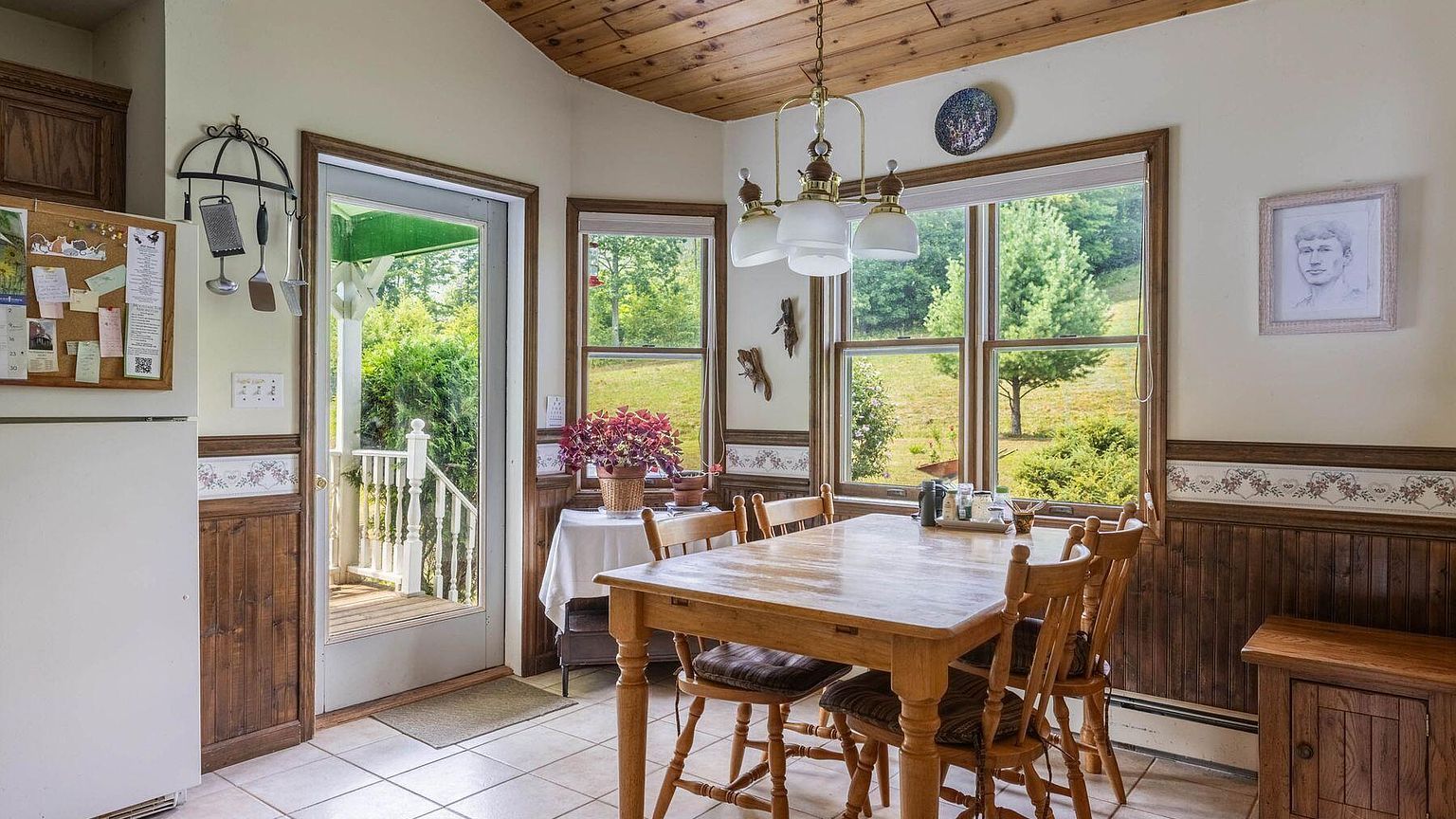 This picturesque property boasts a verdant yard that beckons outdoor enthusiasts. Mature trees frame a sweeping green lawn, creating a serene retreat with mountain silhouettes in the distance. The gently sloping terrain offers a perfect canvas for gardening, recreation, or simply soaking in nature's tranquil beauty.
